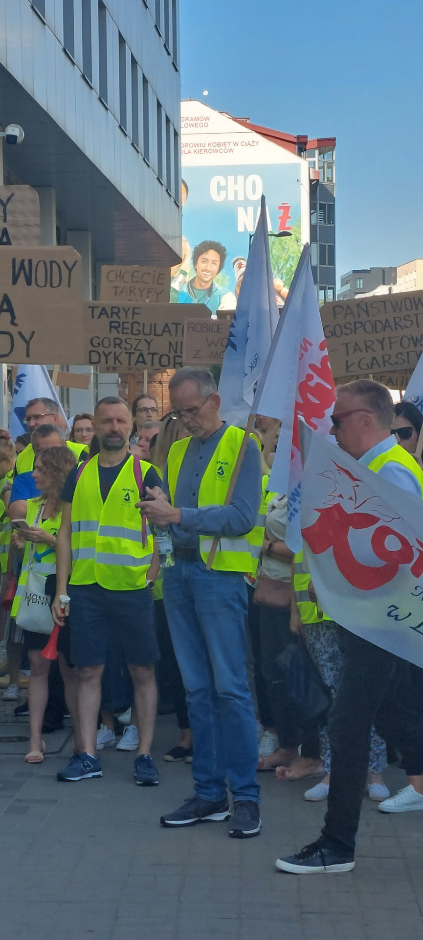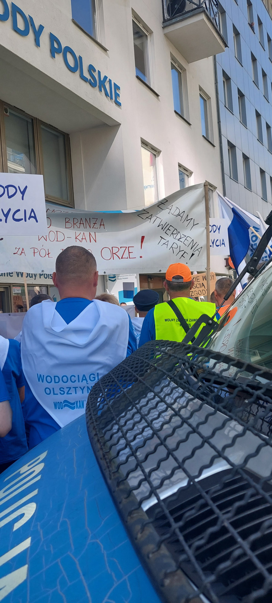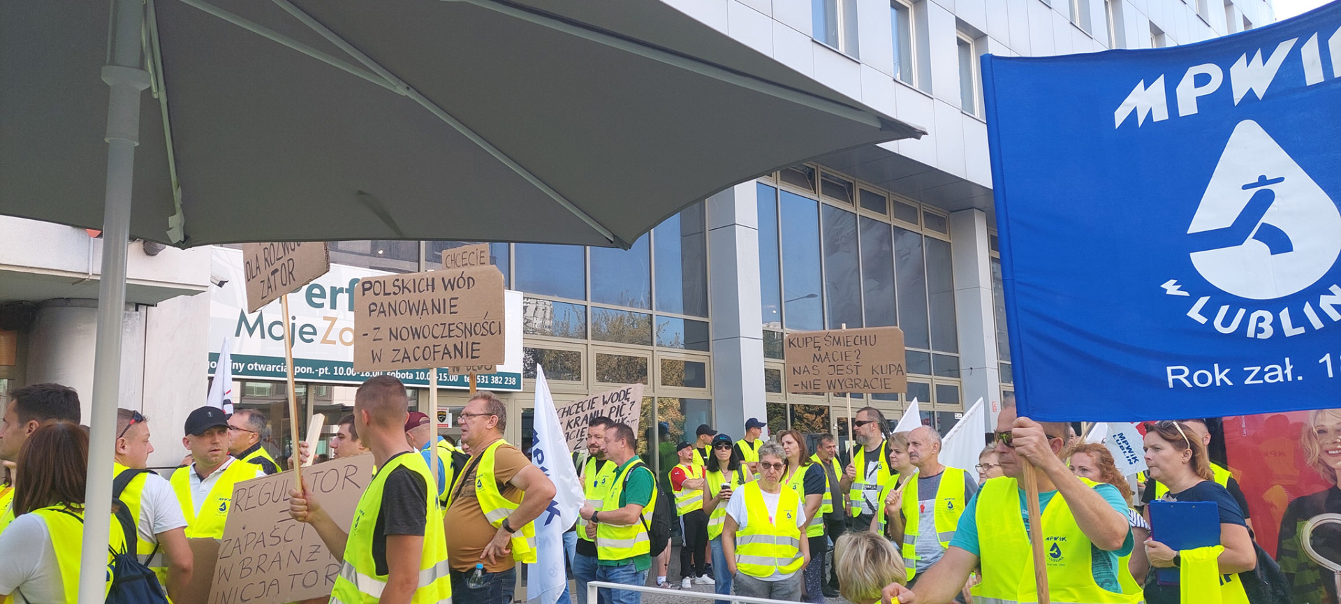 W dniu wczorajszym (28.09.2023 r.) przed siedzibą Państwowego Gospodarstwa Wodnego Wody Polskie w Warszawie odbyła się manifestacja Wolnego Związku Zawodowego Pracowników Gospodarki Wodnej i Ochrony Środowiska oraz pracowników spółek wodociągowych i kanalizacyjnych z całej Polski, w której wzięli udział również nasi przedstawiciele.