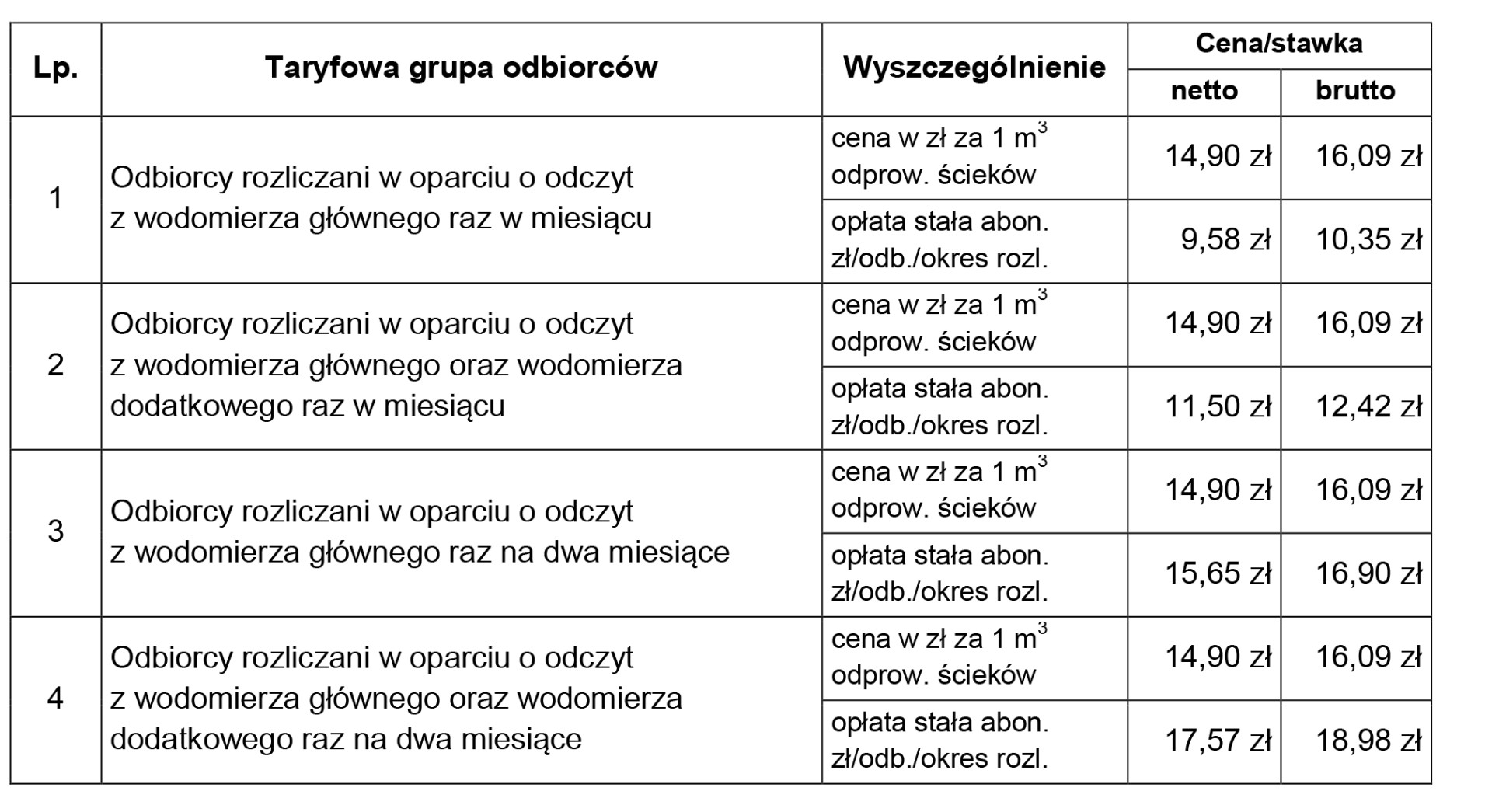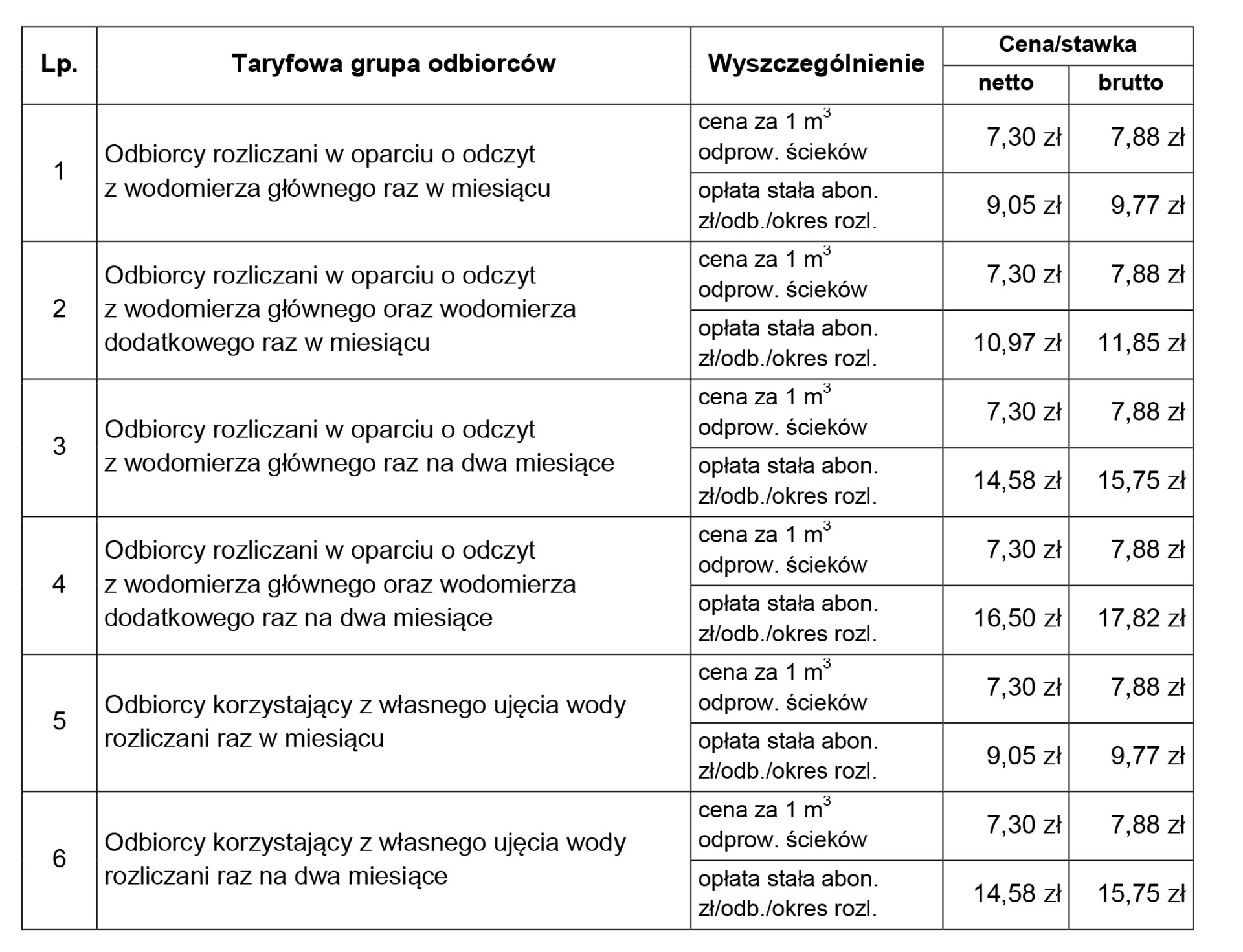 Wysokość cen i stawek opłat za odprowadzone ścieki na terenie Gminy Miasto Oświęcim: