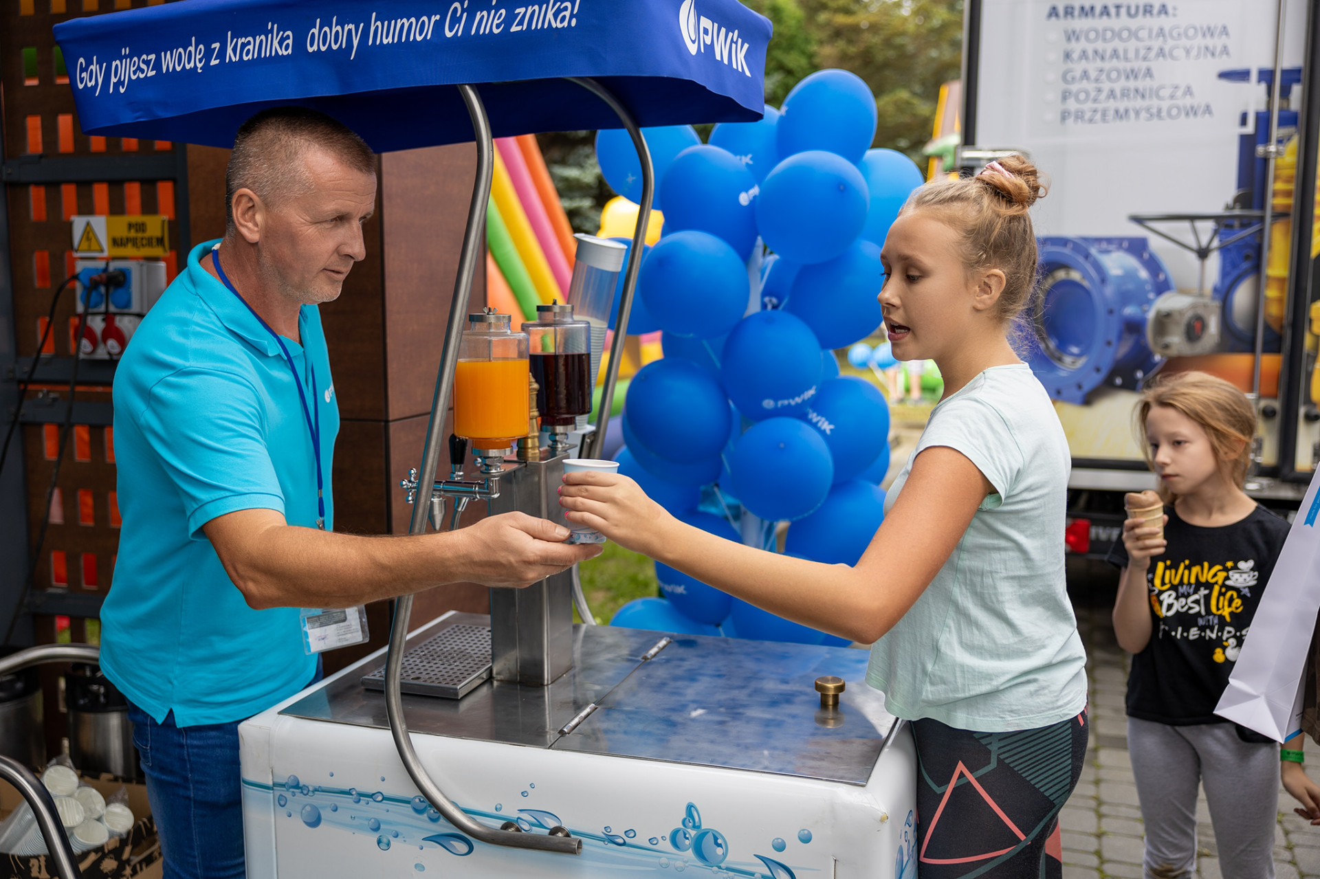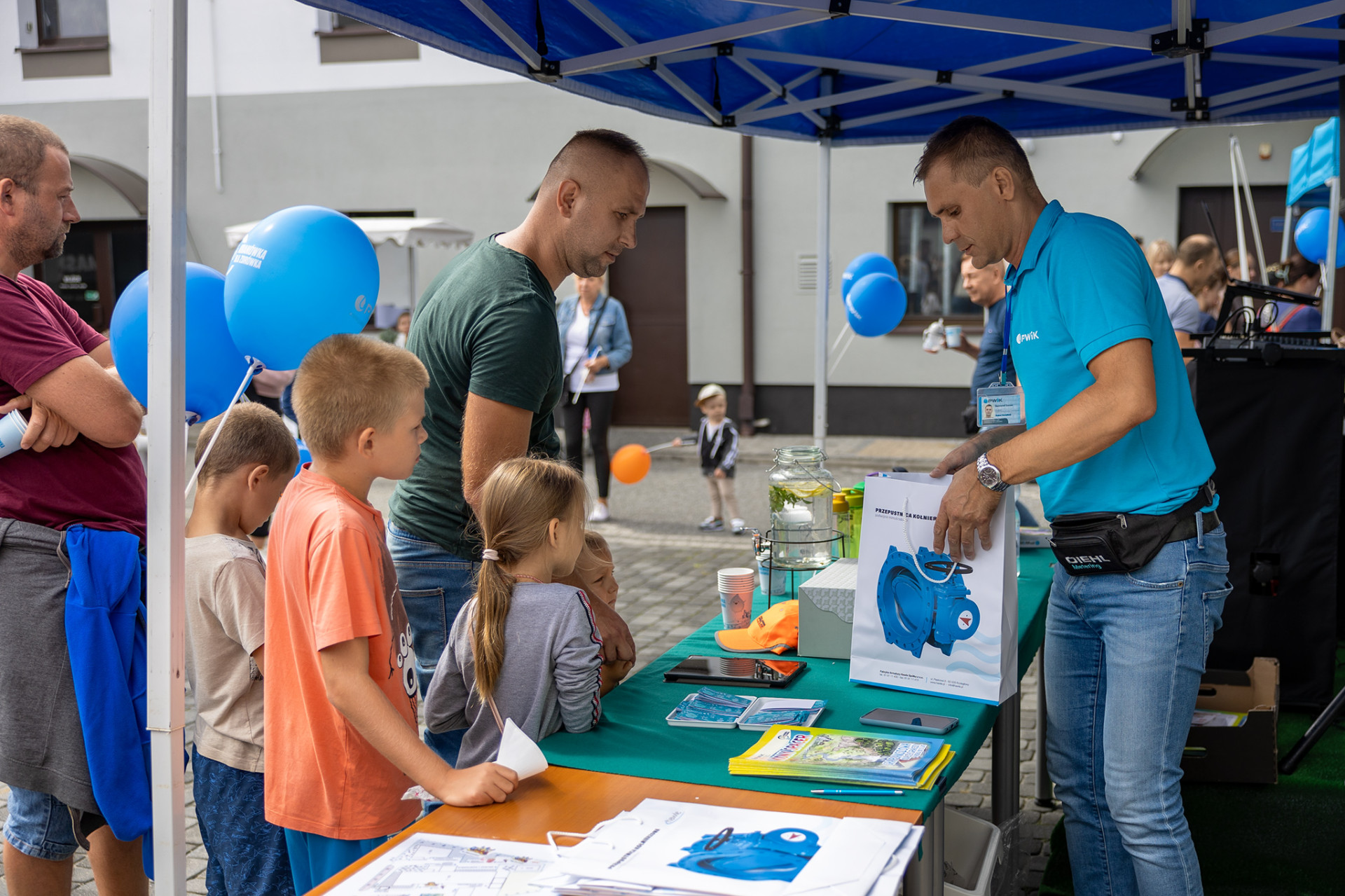 Po raz kolejny nie mogliśmy narzekać na małą frekwencję odwiedzających. Podobnie jak w latach ubiegłych dużym zainteresowaniem cieszyło się zwiedzanie naszego zakładu (gdzie można było poznać z bliska technologie uzdatniania wody) oraz stoiska z armaturą wodociągową. Dla dzieci (ale nie tylko) przygotowaliśmy mnóstwo atrakcji, m.in. malowanie hydrantu oraz zasuwy, zajęcia sportowe, zajęcia CrossKids oraz latino prowadzone przez trenerów z Clubu Fitness 24, darmowe: dmuchańce, wata cukrowa oraz popcorn, malowanie twarzy, warkoczyki, tatuaże, a także cała masa upominków.
